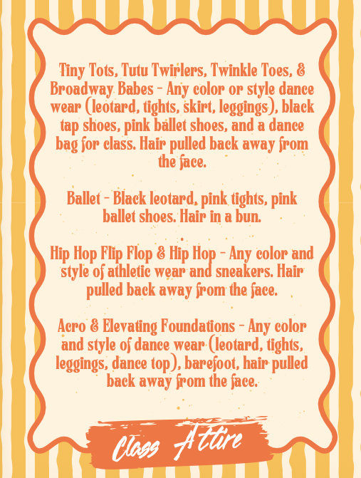 *See below for class descriptions and attire