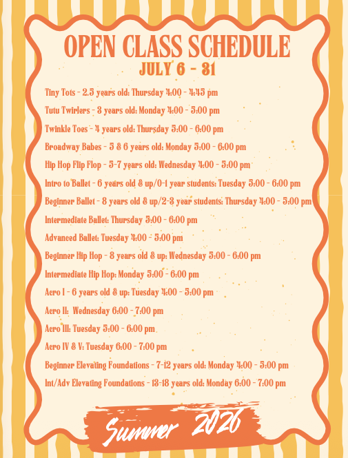 2026 Summer Class Schedule